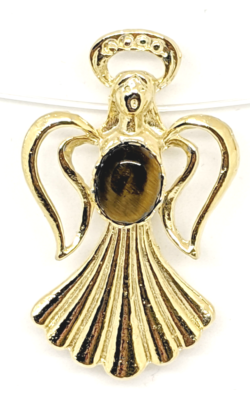 (3¾ x 2½) Gold with black inlay, set with Tiger’s Eye Cabochon.